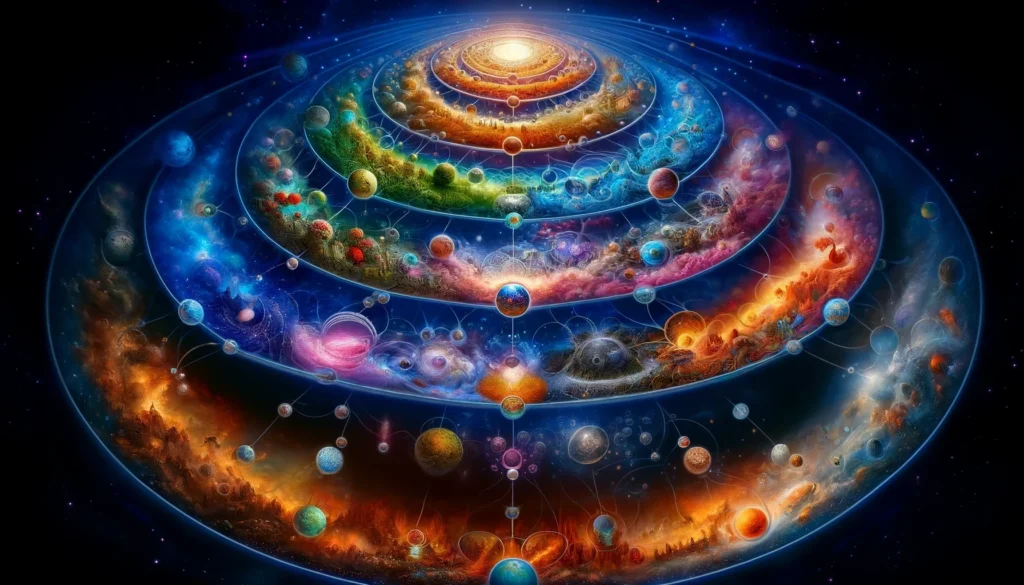 Można wyobrazić sobie całe to uniwersum jako zbiór siedmiu pomniejszych światów. Każdy z nich ma swoją nazwę własną, ale nazywa się je także Kręgami. Są one względem siebie ustawione według określonej hierarchii i połączone z sąsiadującymi przez nieliczne, ukryte przejścia. I tak Krąg Pierwszy jest ponad Kręgiem Drugim (i z nim połączony), ten ponad Kręgiem Trzecim (i połączony z Pierwszym i Trzecim), a on… Rozumiesz. 🙂